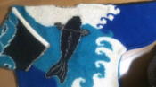 この作品は昔、個展をしたときのDMになった鯉の図柄の半纏です。