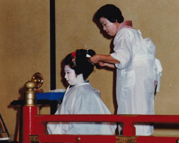 「現代の名工」に選ばれ表彰されました。 現在は京都花街の舞妓さんの髪を結った り、葵祭や時代祭・伊勢神宮祭祀(さい し)で皇族の結髪や着付け・京都島原の太 夫の結髪などができる唯一の存在が認めら れました。 私は、その先生に18歳の時に見初めら れ、日本髪のモデルをしていました。 若い頃はカラスの濡れ羽色のような真っ黒