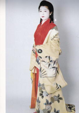 「西陣グラフ」という西陣織の広報誌に掲 載された[日本風俗史女子編]より。 江戸時代前期の「良家子女晴装姿」。見返 り美人の絵のような衣裳です |