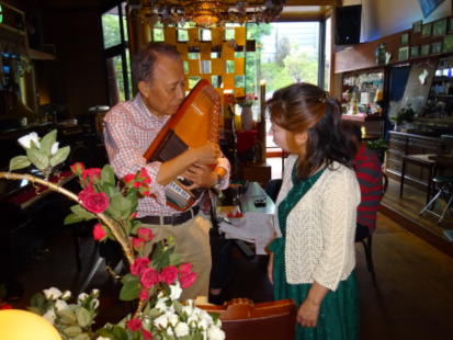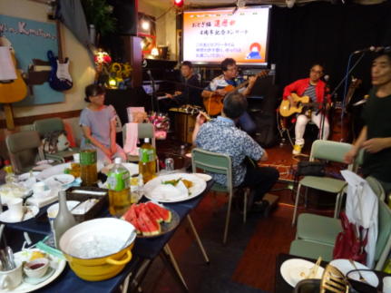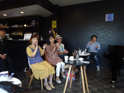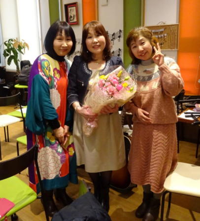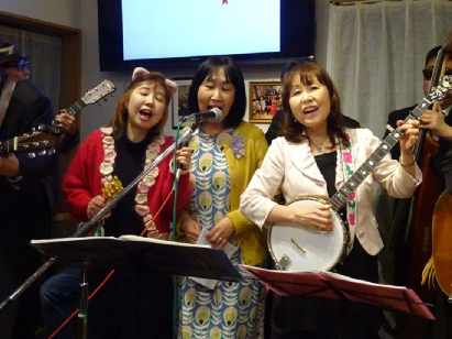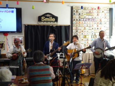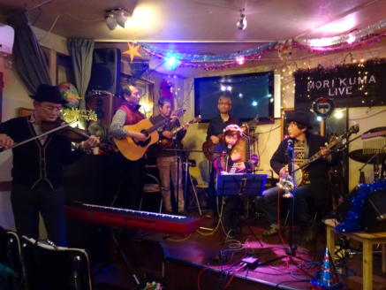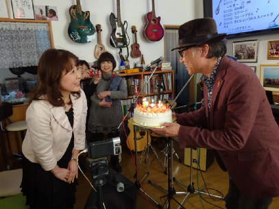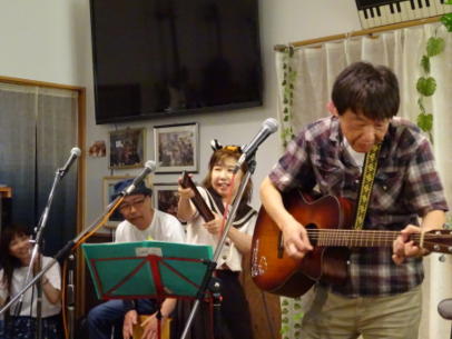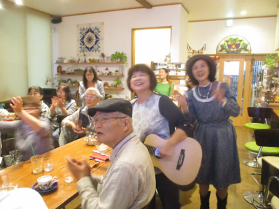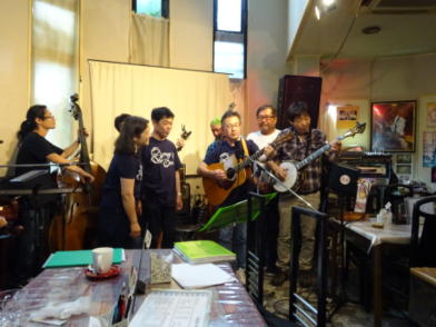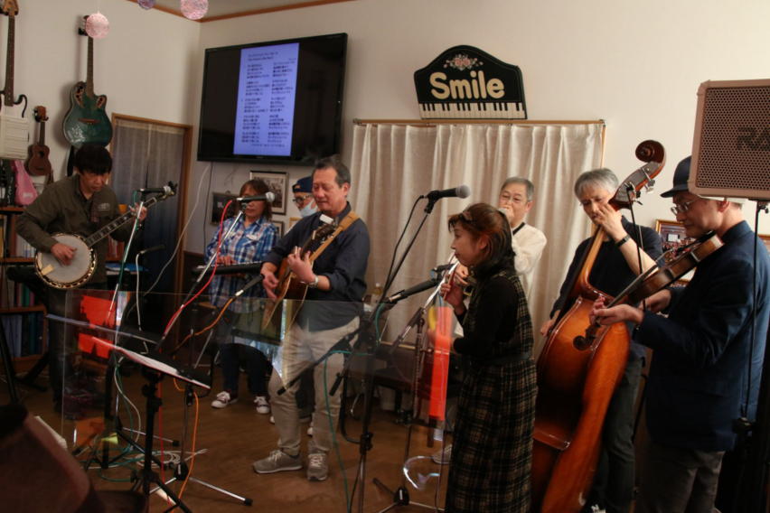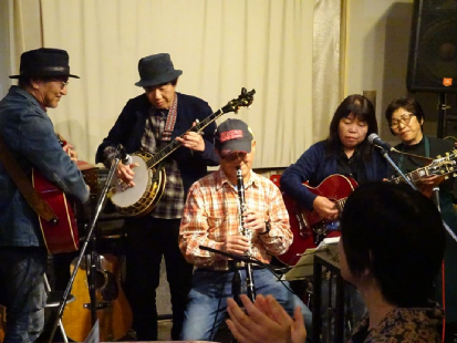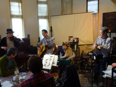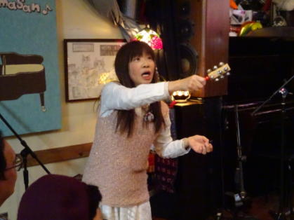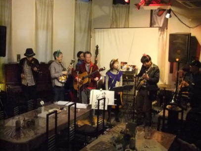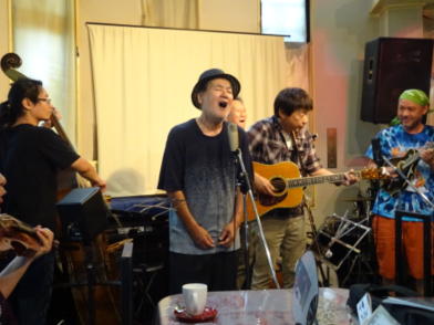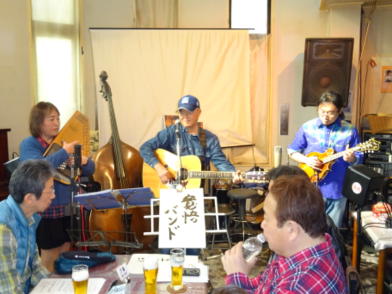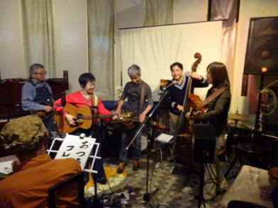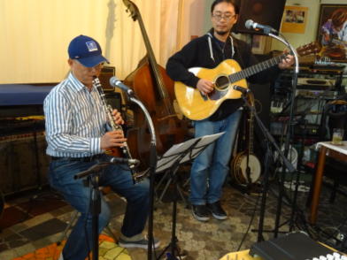 ![]() 最後はみんなでセッション。「柳の木の下」「遠い世界に」。 アットホームな雰囲気で、ほんとに楽しいパーティーライブでした。 |