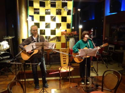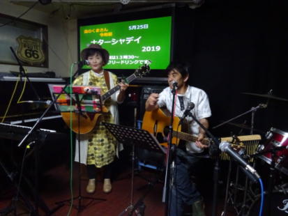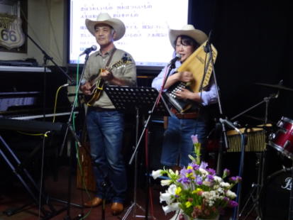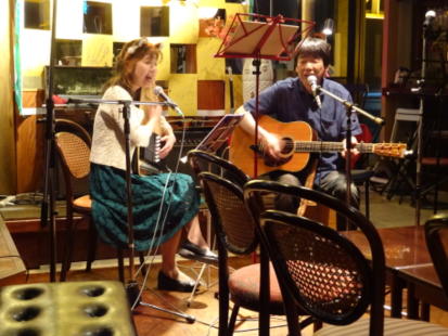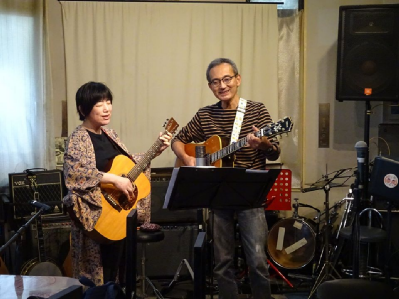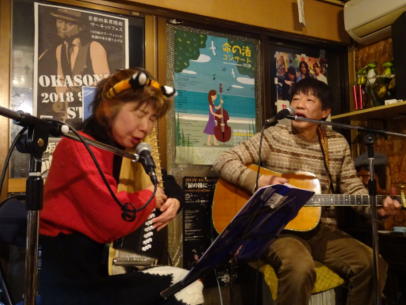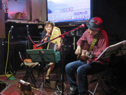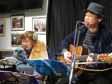 ![]() 2番手 みやこもりさん TokuがHITOMAZzで活動していたときに何度かご一緒しているのです が、久しぶりにお出会いできて嬉しかったです。 こちらも夫婦でない男女ユニットの先輩。親近感を覚えます。(笑) ![]() トリは おとぎぞうしさん リードボーカルの女性がおめでたでお休みのため、このところ 二人で活動されています。 さすがに安定した演奏技術、特にハーモニーが素晴らしく、M Cも面白くて、たっぷり楽しませていただきました。 ![]() 親しい人が応援に来て下さって嬉しかったです。 ![]() こんなお二人も。ええ感じの「アベック」です。 ![]() カーターファミリーから歌謡曲、浅川マキまで取り混ぜ、ごち ゃごちゃとやりましたが、やっぱりフォーク酒場とあって、加 川良の「あした天気になあれ」でけっこう盛り上がりました。 いつもとはちょっと違った雰囲気で、貴重な経験をさせていた だきました。 |