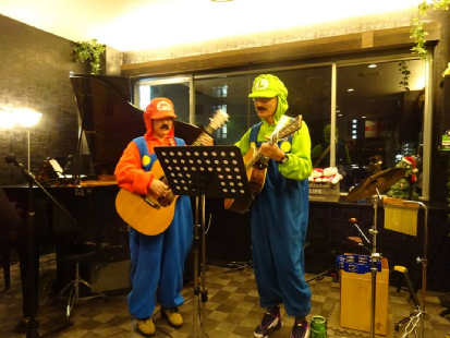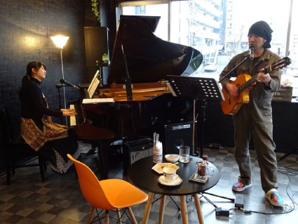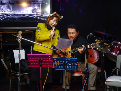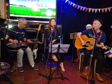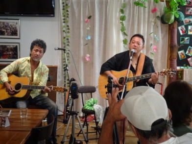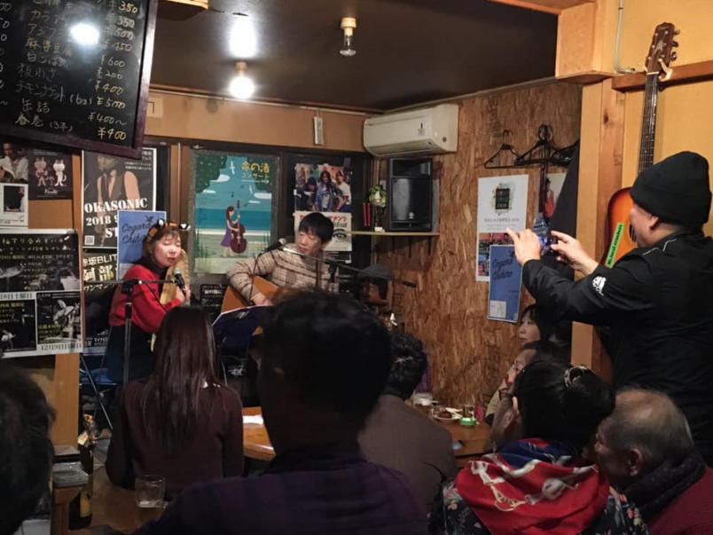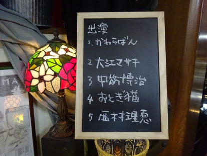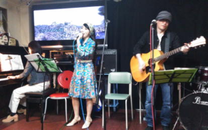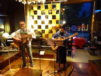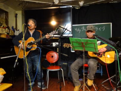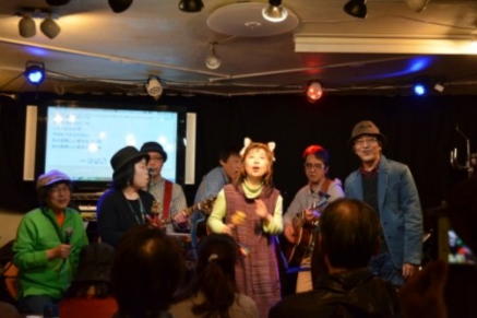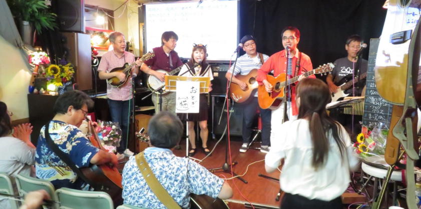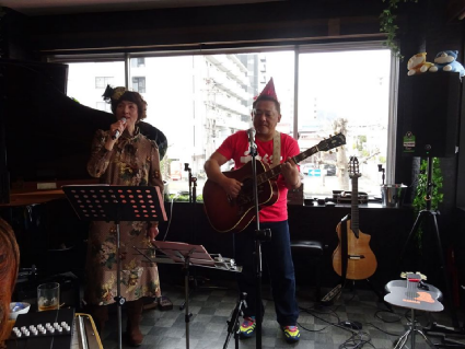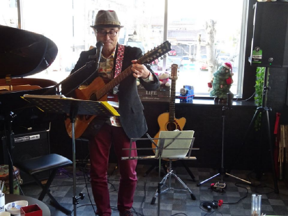 ライブ動画 ![]() 最初の1時間はオープンマイクで、11人のシンガーが1曲ずつ 歌われました。 その後はブッキング3組。まず最初はA&Cさん。スマイルを代 表するミュージシャンによるユニットです。この日はビートル ズのナンバーを演奏されました。めちゃくちゃ上手い! ![]() 続いて、Shuさん。この日は二人のサポーターを引き連れて登場。 甘いマスクと渋い歌声で女性に大人気! 沢田研二や西城秀樹などの曲を演奏されました。 ![]() なんと、おとぎ猫はトリで登場。 お酒がまわりテンションアップした客席からは楽しいヤジ(声 援?)が飛び交いました。 とても素敵な雰囲気の中、アンコールまでもらって心地よく演 奏を終えることができました。 「音楽仲間っていいなぁ!」と再認識する瞬間でした。 ![]() |