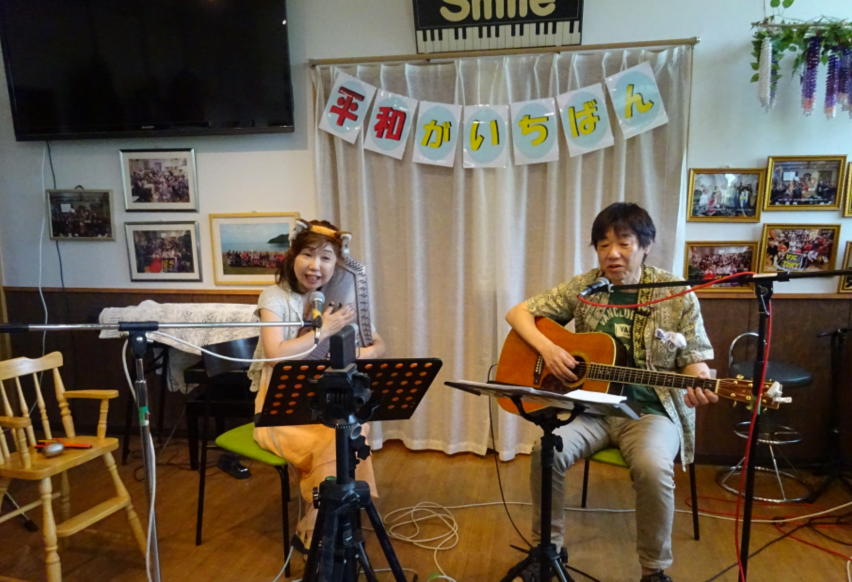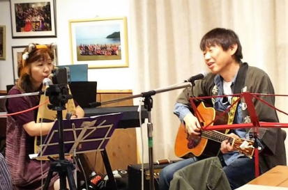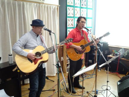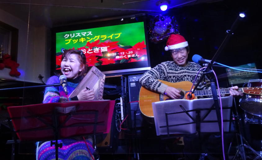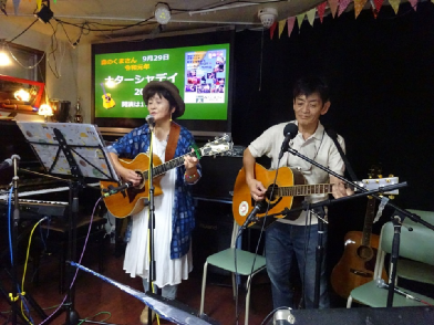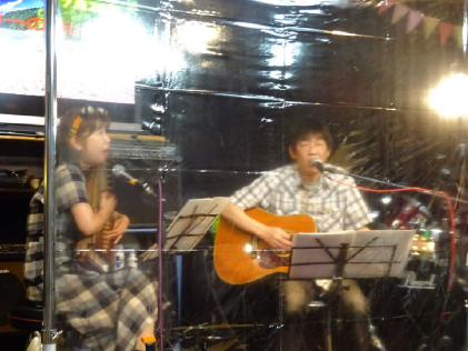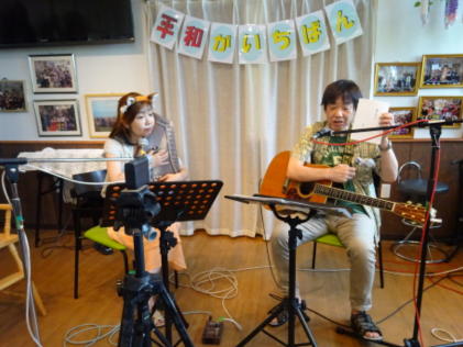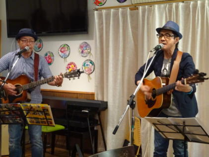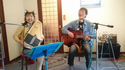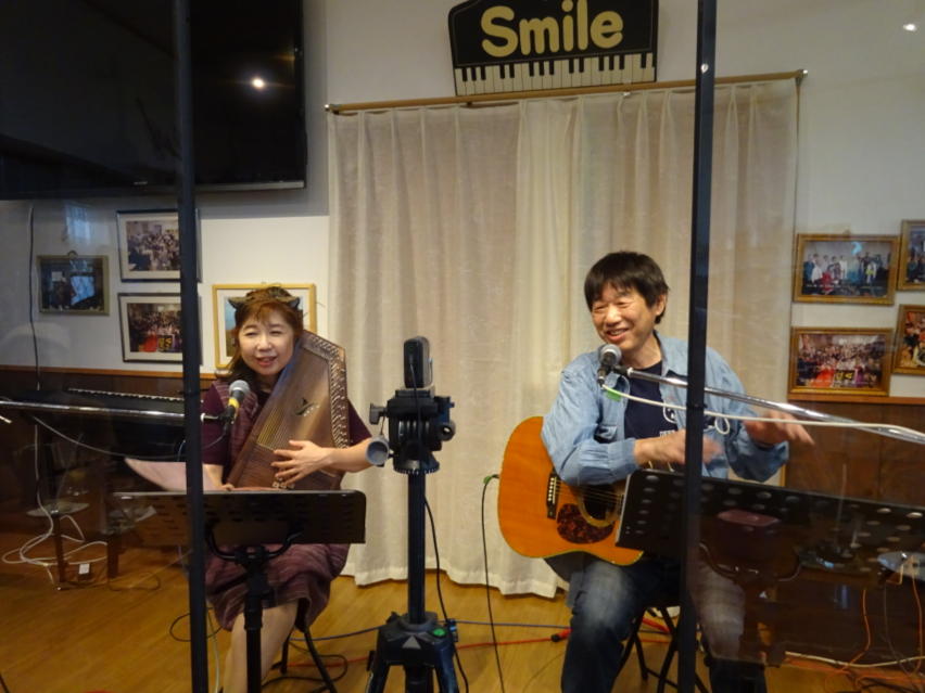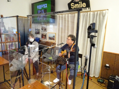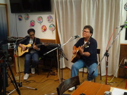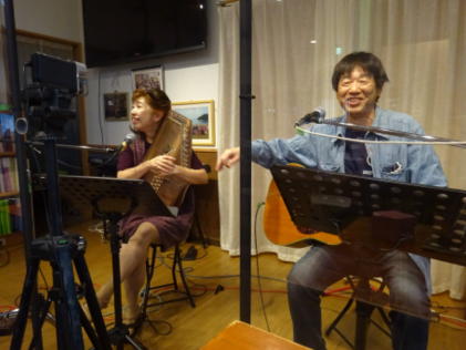コミュニティカフェ・スマイルさんにて第108回「にちようライ ブ」が7か月ぶりに再開されました。再開初回の出演者としてお声 を掛けていただき、とても光栄です。 感染対策として密を避け、普段なら5組のところを4組にしてのコ ンサート。検温・マスク着用・換気・シールドなど、出演者もお客 様も安心できる配慮をされていました。窓は全開放のため、ときど き列車の走る騒音が聞こえますが、それもまた乙なものです。 ![]() まずはランチをいただくところから始まります。この日のメニュー は油淋鶏(ユーリンチ)、Yumiの大好物です。 Tokuはいつも野菜を残して、ひろよママに叱られています。(笑) ![]() おとぎ猫はトリで登場。久しぶりのスマイルでのライブで気合が入 り、二人ともテンションが上がっています。 いつになくMCも好調で、よく喋りました。 【おとぎ猫演奏曲】 @ 陽気に行こう A あなた B 夜汽車 C 恋に落ちて D 風に吹かれて アンコール曲「綿つみの歌」 ![]() ![]() お友達が連れだって見に来て下さったり、写真や動画を撮って下さ ったり、とても嬉しかったです。 こんな時期ではありますが… 皆様方が健康で安全にこれからも音楽を楽しむことができますよ う、心より願っております。 |