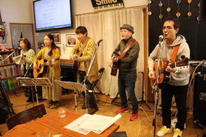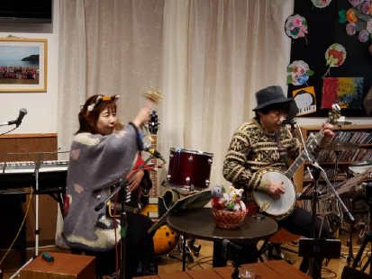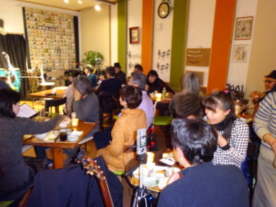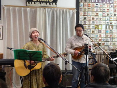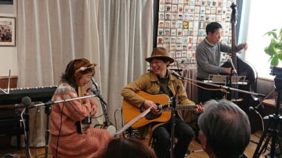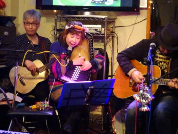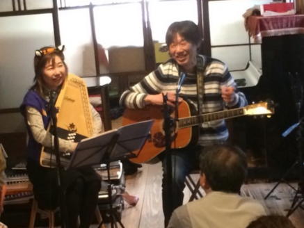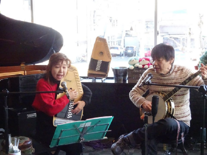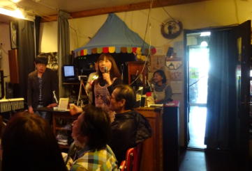 ライブ動画 今年で第6回目となるこのコンサート。昨年と同様にベースの野 口さんをサポートメンバーに迎え、3人編成で参加させていただ きました。 スマイル店内は、ひな祭りの装い。今回は女性の出演者が多く、 会場は華やかな雰囲気に包まれました。 たくさんのお客様がお越しになり、急きょテーブルを撤去して椅 子だけの客席となりました ![]() ![]() 左から、ピアノ、バンジョー、オートハープの三人官女。(笑) ![]() @まこにぃ&さぁこさん ご夫婦で息の合った演奏を聴かせていただきました。今回のホス ト役、お疲れ様でした。 ![]() Aみずたにあやさん(with 河林陽介さん) 元気の良いボーカルとハイテクニックな演奏サポート。 普段なら一番若いはずなんですが、次に出た人がめちゃ若くて、 これには負けましたね。(笑) ![]() Bアイノアカリさん こちらはお母さんと娘さんのデュオ。 中学生のお嬢さんに高田渡の「生活の柄」を歌わせるとはすご い! |