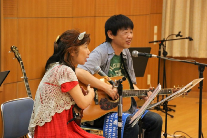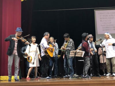 毎年この時期に豊郷小学校旧校舎群で開催されるフォークジャン ボリー、おとぎ猫は4回目の参加となりました。ライブカフェ 「森のくまさん」の常連出演者が一堂に会する文化祭のような催 しです。 今回はメインステージ(講堂)、サブステージ(教室)、それぞ れ約20組が登場する盛大なイベントとなりました。 ![]() 今宮さんのステージですが、Yumi はカズー&バックコーラスで参加。 最近、カズー奏者として認められつつあります。(笑) ![]() お昼の時間帯には「歌声喫茶コンサート」と題して、会場の皆さ んと一緒に懐かしいフォークソングを歌いました。 おとぎ猫の二人も伴奏&コーラスで参加。 ![]() 【おとぎ猫演奏曲】 ・愛とあなたのために ・サラダの国から来た娘(Bs: 上南さん) ・ガンダーラ(G: ZENさん、Pc: 西村さん) ライブ動画 |
