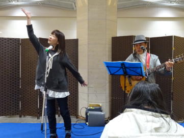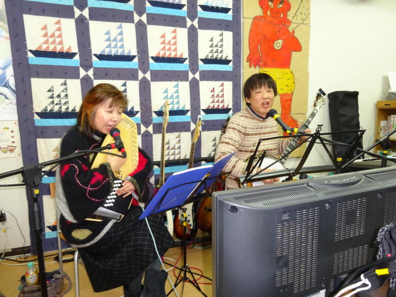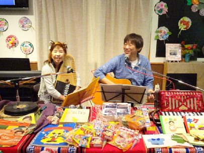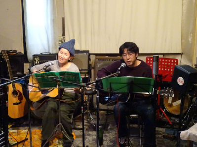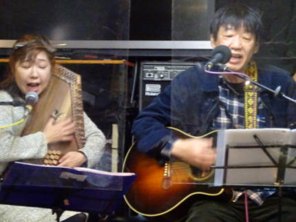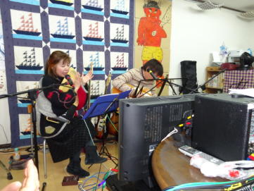 | 京都、地下街のゼスト御池にて、センチメンタルボーイ さんの「青春の歌声喫茶」にゲスト出演させていただき ました。 おとぎ猫としては、まあ3曲やっただけなんですが、全 体としては3時間半におよぶ昭和歌謡ヒットパレードの 数々。Yumiはボーカルの一員として、何度かステージに 立ちました。 始まったときはこんな感じでしたが、だんだんお客様が 増えてきました。 一緒に歌われる方やリクエストをされる方も多く、昭和 歌謡の力を再認識させられました。 ライブ終了後は、センチメンタルボーイさんがパーソナ リティーを務められるラジオ番組にゲスト出演。初めて の経験で緊張しましたが、とても有意義な一日でした。 ![]() センチメンタルボーイさんはほんとにすごい! よくもあれだけ連続で演奏できるものだとびっくり。ギ ターも歌も、とてもお上手です。リクエストも何でも来 い!で、レパートリーは500曲以上だとか。 ![]() 相方のジッコさんはTokuの従姉です。 ![]() こちらはTokuの妹。「ひょっこりひょうたん島」を歌っ て踊っています。 ![]() |
