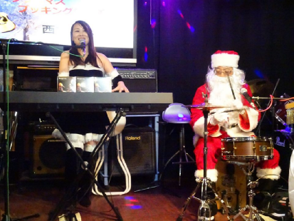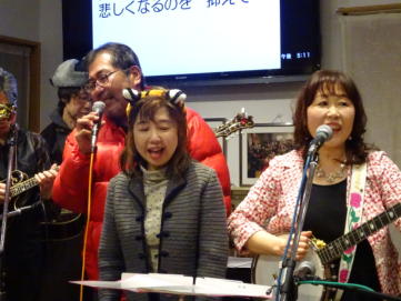 昨年に引き続き、森のくまさんクリスマスライブに参加。仲の良 いバンドの皆さんとともに、楽しく過ごさせていただきました。 今回は「Cocoro」のミヤコさんとカズミさんにピアノとボーカル のお手伝いいただき、また、えつこさんには盛り上げ役として活 躍いただきました。 ![]() ![]() 【おとぎ猫演奏曲】 @ Gold Watch and Chain A 十字架に帰ろう B Amazing Grace C ふしあわせと言う名の猫 D みこころのままに(Let It Be 日本語版) E サンタが街にやってくる ライブ動画 ![]() オープニングは「ちえっちゃん」 カワイイ衣装で元気な歌声 |