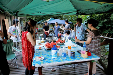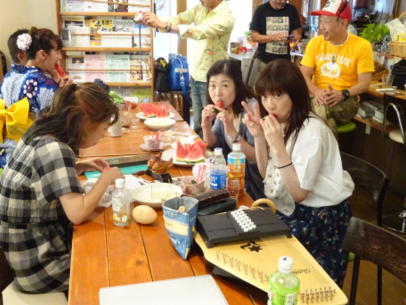 ございました。 ![]() ![]() 広大なウッドデッキは今宮さんの手作り。 こんな本格的なバーベキューコンロもあります。 ![]() コテさばきがプロっぽい。焼きそば美味しかったです。 ![]() ![]() ![]() ![]() ![]() ホストの今宮さん(写真右)。 何から何までお世話になり、ありがとうございました。 |