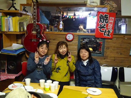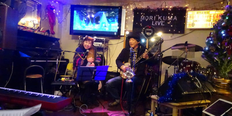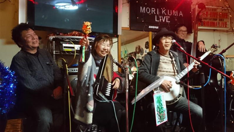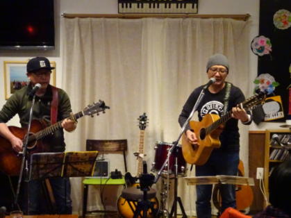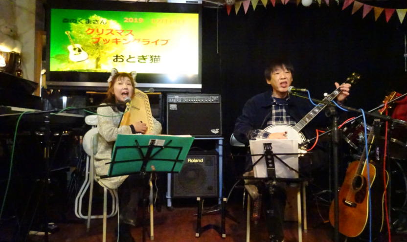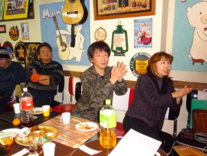 これはどう見ても、ライブというよりは宴会ですね。(笑) 12月30日の夜、「森のくまさん」の常連が集まって、飲んで食べ て歌い、楽しいひとときを過ごしました。 森のくまさんは「おとぎ猫」がステージデビューを果たした思い 出の場所。初めて出たとき皆さんに暖かく迎えていただき、それ 以来居心地がよくて、今でもよく出させてもらっています。 おとぎ猫が今も続いているのは、森のくまさんあってのことと、 厚く感謝しております。 そんなお店の忘年会にお声掛けいただき、とても光栄です。 降雪が心配される寒い夜でしたが、遅くまで楽しませていただき ました。 ![]() ![]() ライブ動画 ![]() ![]() |