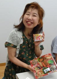 ![]() お弁当とお菓子をもらって大 喜びのYumi。 開演前もスタッフやスィート グラスメンバーの皆様と楽し く過ごさせていただきまし た。 |