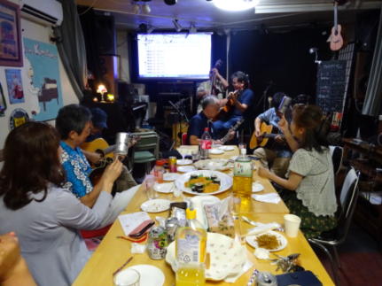 ![]() Yumi はいつものように、よく食べました。 ![]() Tokuはギターとバンジョーを持ち替え、いろんな方々とのセッ ションを楽しませていただきました。 ![]() ![]() イベントのタイトルは「フォーク、ブルーグラス&カントリ ー セッション」ですが、そのほかジャズやビートルズ、アニ メソングまで飛び出し、とても自由で楽しいセッションライブ でした。 音楽好きな仲間たちといろんな楽器を持ち寄って歌や演奏を楽 しむ。ほんとにステキなイベントに参加させていただきまし た。 以下はTokuがFacebookに掲載した投稿から抜粋。 「僕は音楽で人を感動させようなんて思わないし、自分の奥に 秘めた熱い想いを吐露しようなんてまったく思わない。音楽は みんなで楽しくやればそれで十分だと常日頃思っています。 そこで重要なキーワードは”共有”。その空間に流れるリズム や、歌にまつわる情感や思い出なんかを共有し、楽しい時間を みんなで共有する。 今回のイベントを通じて、そういったことを改めて認識しまし た。」 ぜひまた、このようなイベントに参加したいと思っています。 |