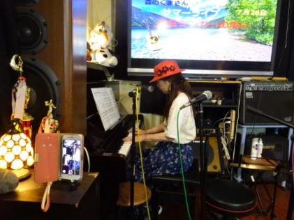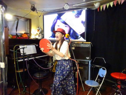 人気のスマイルナイト。初めて参加させていただきました。 会場にはお酒とおつまみがたくさん準備され、まさに酒場の雰囲 気。日ごろ顔見知りの仲間と音楽を聴きながら飲み交わし、楽し い夜を過ごそうという企画です。 おとぎ猫は「明るく健全なバンド」を自負しておりますが(笑)、 この日は夜の猫となり、しっとり酒場の雰囲気でステージに臨み ました。 Yumiはお酒がまったく飲めず、Tokuは車を運転しなければならな いため、二人ともシラフ。でも会場の雰囲気に包まれ、とても楽 しいひと時を過ごすことができました。 ![]() ![]() このお店はオーナーやスタッフが女性で、お客様も女性が多いの が特徴。お酒が入ってもグダグダした感じにならず、とても良い 雰囲気です。 ![]() 【おとぎ猫演奏曲】 @ 今宵恋に泣く A ふしあわせと言う名の猫 B だけど(くぼうゆめさんのカヴァー) C 歌うたいのセレナーデU(やぶうちさんのカヴァー) D ラストダンスは私に E サイド・バイ・サイド アンコール 私の青空 BとCは、お友達シンガーソングライターが作られた曲のカヴァ ーです。作者お二人とも見に来て下さり、とても嬉しかったので すが、失礼がないようにと緊張。 「だけど」はとても妖艶な曲なんですが、日頃「おっさんみた い」と言われてるYumiがどこまで色っぽく歌えるか、果敢なチャ レンジでした。 |