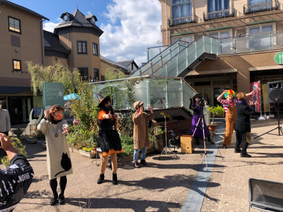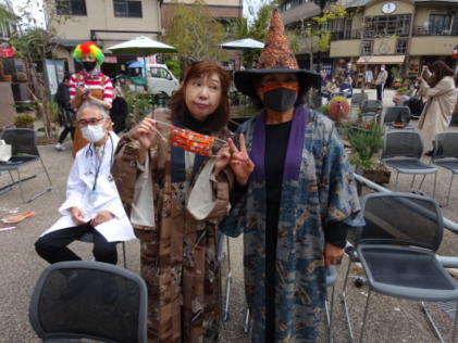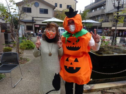 彦根四番町スクエアで初めて歌わせていただきました。 春の出演が延期になり、季節はハロウィンに… ![]() Yumiは普段から仮装をしてるので、まあいつもの猫耳。(笑) Tokuは見に来られていた人から猫耳を借りました。付ける位置が変 でブタみたい? 他の出演者さんの仮装は、ほんまに凄かったです。 ![]() 【おとぎ猫 演奏曲】 ・綿つみの歌 ・サラダの国から来た娘 ・風に吹かれ続けている ・陽気に行こう ラストの「陽気に行こう」では、HITOMAZzのZENさんとバロンズの 北村さんに入ってもらって、賑やかにやりました。(トップ写真) ![]() ![]() ![]() 彦根四番町は地元の皆さんが優しく、とても素敵なところでした。 ひこにゃんは密になるためお休みで残念でしたが、ひこにゃんグッ ズやお菓子をお土産に沢山買いました。 ぜひまた行ってみたいです。 |
