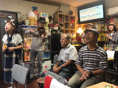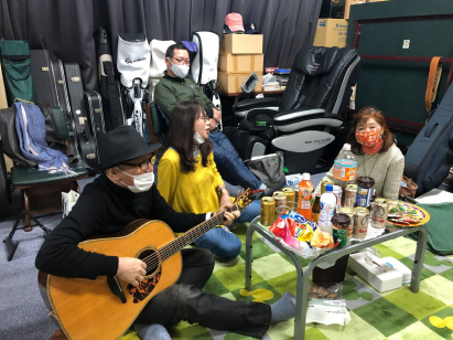 コロナ対策で春から延期になっていた昭和歌謡コンサート。飛沫シ ールド、入場者数制限などの措置の中、ようやく開催することがで きました。 時代は平成を過ぎて令和となりましたが、忘れられつつある昭和の 名曲を皆さんと共有し、懐かしい思い出を感じる、素敵なコンサー トでした。 このところアメリカフォーク系の曲をやる機会が増えていますが、 日本の歌謡曲もやっぱり良いですね。 ![]() 【おとぎ猫 演奏曲】 ・石狩挽歌 ・あなた ・別れの朝 ・恋におちて ・また逢う日まで ・私の彼は左きき(アンコール) 森くまマスターから「ラストは筒美京平さん追悼でやってほしい」 と言われ、「また逢う日まで」。アンコールも筒美氏の曲にしまし た。踊り子えっちゃんの人気がすごい。(笑) ![]() ![]() ものすごい形相。なんでこんな顔になるの? ![]() 終演後も皆さんと一緒に写真を撮ったり、ケーキを食べたり喋った り、楽しい一日となりました。 |