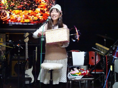 ![]() さて、いよいよ上映会当日。出演者3組のほか、何人かのお客 様が見に来てくださいました。会場では各出演者の動画ダイジ ェスト版が映され、感想などを言い合いました。 自分の動画を皆さんと一緒に見るのは、ちょっと恥ずかしいも のです。 ![]() ちゅりっしゅさん。動画収録時と同じ、強烈な衣装で来られま した。 ![]() ![]() 最後はみんなで「切手のない贈りもの」を歌いました。 来年は一堂に集まって生のライブができるよう祈っています。 |