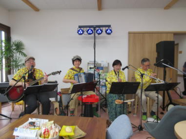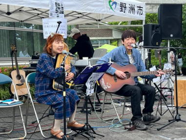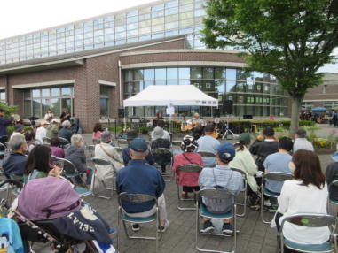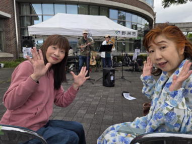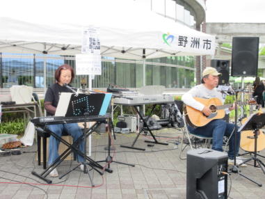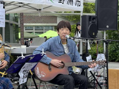 | 滋賀県野洲市にある野洲図書館前で開催された「やすまる広 場」にて、「音楽マルシェ」に参加しました。 雨が心配されておりましたが、この日は曇り空で最高気温が 20度。この時期にしては有難い涼しさで、快適に歌うことが できました。 多くの家族連れの方々が続々とイベントに来られていまし た。 たくさんのキッチンカーや屋台が立ち並び、焼きそばやたこ 焼きなどを買って、音楽仲間の皆さんと一緒に食べたりお話 をしたりして、楽しい時間を過ごすことができました。 ![]() 【おとぎ猫演奏曲】 @ 遠い世界に A 虹をわたって B いい日旅立ち C 石狩挽歌 D イマジン(おとぎ猫訳詞) ![]() ![]() ![]() ![]() ![]() ![]() ![]() ![]() ![]() ![]() |