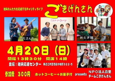 | 滋賀県東近江市にある難病応援センターにて… 難病の人たちを応援するチャリティライブ「ごきげんさん」 が開催されました。 先週太子ホールにご来場くださいましたお客様がまた来てく ださってお話することもでき、嬉しかったです。 私の祖母がALSであったこと… 介護職に従事することになったこと… 音楽を通じて出会った素敵な方々… 見えない何かに導かれているようでなりません。 難病応援センターは私にとりましても元気の出る場所です。 難病といわれている病気の原因が研究によって判明し、治療 が開発されることを願っています。 そして同じ地球に生まれた人々や動物が平和で愛情に満ちた 優しい気持ちで生きて行ける社会になってほしいものです。 (Yumi) ![]() 【おとぎ猫の演奏曲】 @遠い世界に A虹をわたって Bいい日旅立ち Cさらば恋人 D石狩挽歌 E花嫁(アンコール曲) ![]() ![]() |