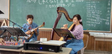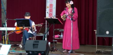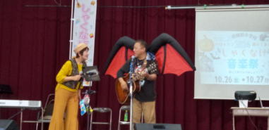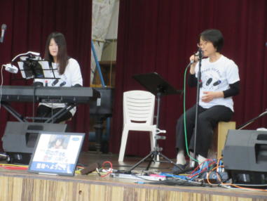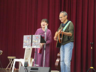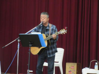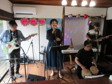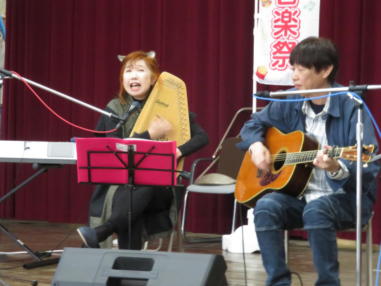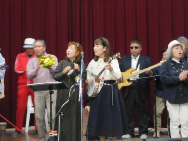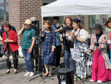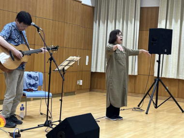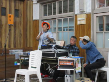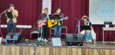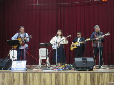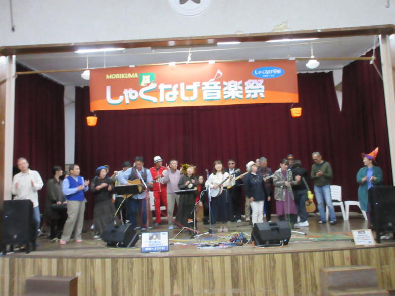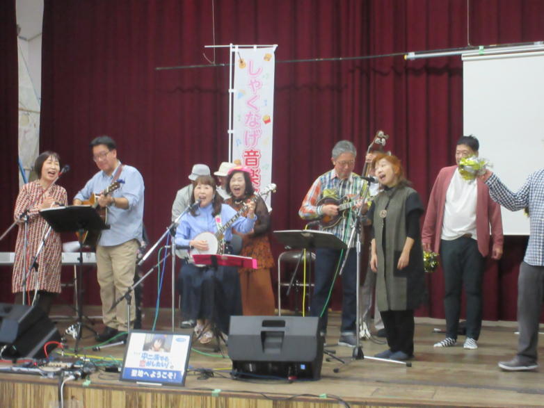 | 滋賀県日野町にある旧鎌掛小学校(しゃくなげ学校)にて、 「しゃくなげ音楽祭」が開催されました。 森のくまさんの音楽仲間が集まりコンサートで交流を深めま した。 今年はキッチンカーなども手配され、曇り空の中ではありま したが、とても楽しいイベントとなりました。 メインステージとなった講堂は、NHK朝ドラ「ブギウギ」の 撮影場所ともなったところ。音がよく響く素敵な環境の中、 心地良く音楽を楽しむことができました。 たくさんの方々が出演されましたが、写真は一部の方のみ掲 載しています。 ![]() 【おとぎ猫の演奏曲】 @生活の柄 A誰かが風の中で Bリターン・トゥ・パラダイス Cイマジン(おとぎ猫訳詞) ![]() ![]() ![]() ![]() |