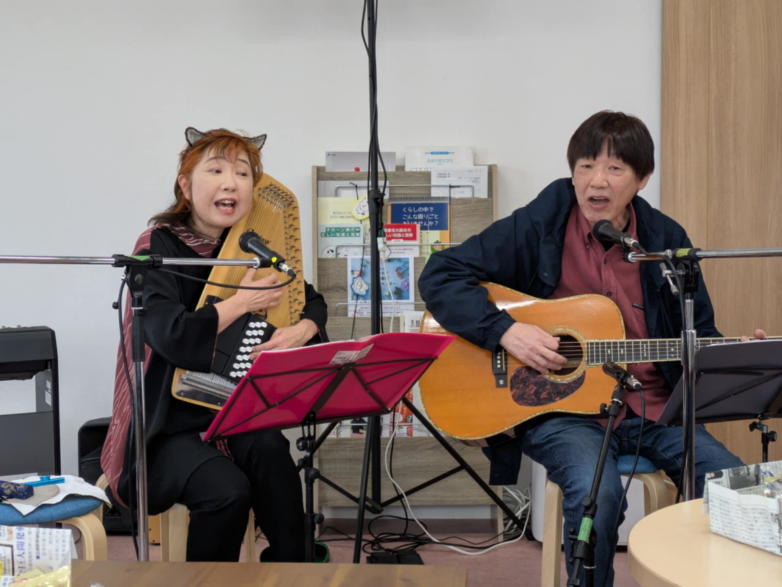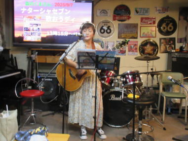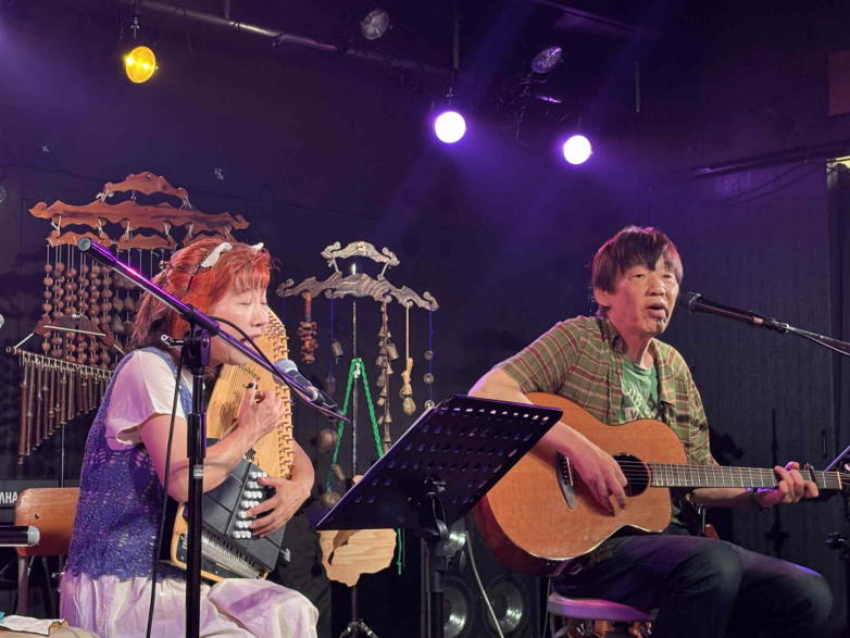 | 滋賀県野洲市の「森のくまさん」にて、「夏の音楽祭」に参 加させていただきました。 戦後80年、今も続いている戦争が終わり、平和な世界が訪 れることを願って、反戦歌が多く歌われました。 戦争体験者が少なくなりつつある現在、戦争の悲惨さと平和 の尊さを次の世代に伝えることが、私達の使命のように感じ られます。 おとぎ猫も普段からよく歌っている「大統領殿」をリストに 加えました。 平和であることが当たり前ではなく、先人達が家族のため に、血と涙を流したことを忘れてはならないと思います。 出演者の皆様、雨の中お越しくださいました方々、ありがと うございました。 【おとぎ猫演奏曲】 @ 私を待つ人がいる A 少年時代 B 大統領殿 C サルビアの花 D 綿つみの歌 ![]() ![]() ![]() 開演前のランチタイム。 ![]() 終演後はみんなでおやつタイム。 |