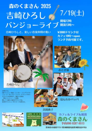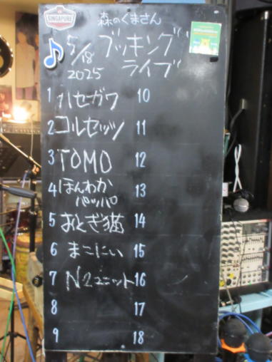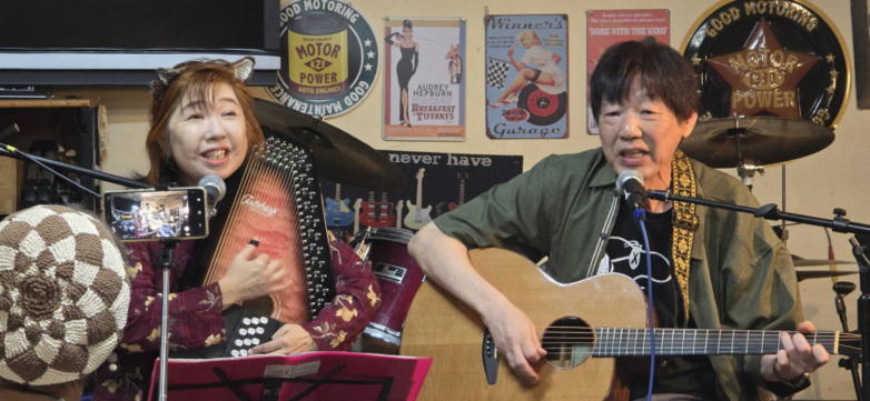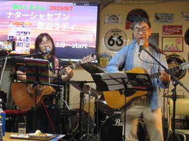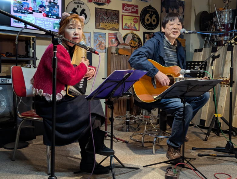 | 2025年5月18日(日曜) 滋賀県野洲市の「森のくまさん」にて、ブッキングライブに 参加しました。 今回は出演者7組とブッキングにしては多い方ですが、様々 なジャンルの音楽で時間たっぷり楽しませていただきまし た。 おとぎ猫は、前回の昭和歌謡とは打って変わってフォーク路 線。1970年代フォークっぽい服装で臨みました。 初夏の匂いが感じられる日曜日の午後、とても楽しいひとと きでした。 【おとぎ猫演奏曲】 ・あしたになればね(ナターシャセブン) ・無縁坂(グレープ) ・サルビアの花(早川義夫) ・あした天気になあれ(加川良) ・綿つみの歌(ナターシャセブン) ![]() ![]() 練習が終わってランチタイム ![]() 開演前のティータイム ![]() ![]() |