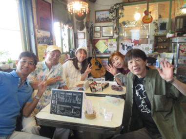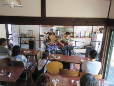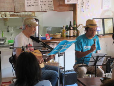 | 亀岡市の「小町カフェ」さんにて・・・ 森のくまさんで出会った「歌TABI人」のNasa Masaさんにお 声を掛けて戴き、出演させて戴きました。 小町カフェさんは亀岡にお店をオープンされて1周年が経 ち、今回が初めての音楽イベントで第1回目のコンサートで した。 音楽を愛する出演者の皆さんが大阪・京都・滋賀から集まっ て来られました。 初めての場所、初めての出会いはとても新鮮で、お客様もた くさん見に来られて、アットホームな温かいコンサートにな りました。 ![]() ![]() 【おとぎ猫の演奏曲】 @生活の柄 A上海バンスキングメドレー (月光値千金〜上海リル〜サイドバイサイド) B綿つみの歌 Cイマジン(おとぎ猫訳詞) ![]() ![]() ![]() |