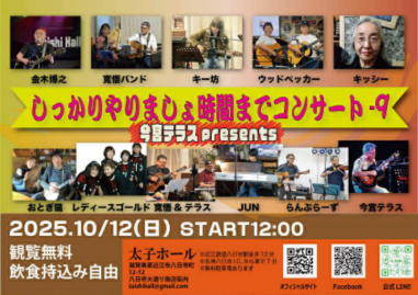 ![]() 寛悟&テラスさん ![]() 金木博之さん ![]() JUNさん ![]() 今宮テラスさん ![]() キー坊さん ![]() らんぶらーずさん ![]() 寛悟バンドさん ![]() |