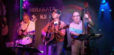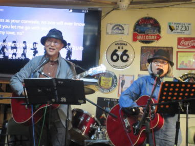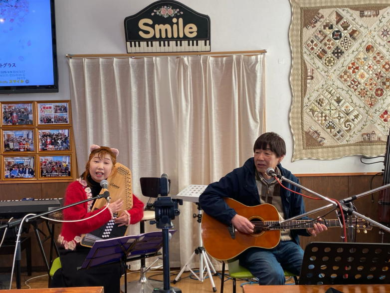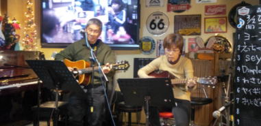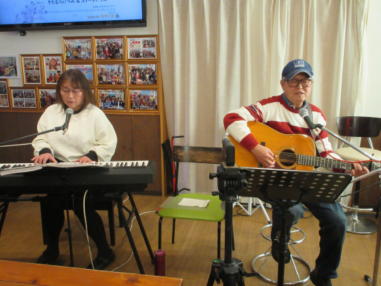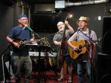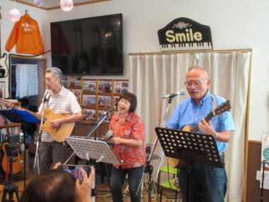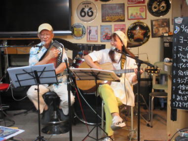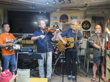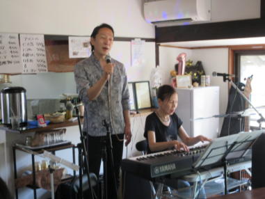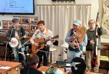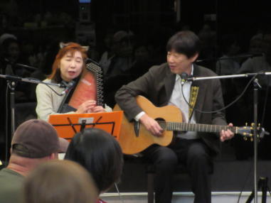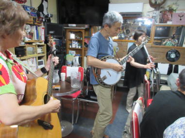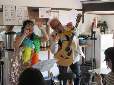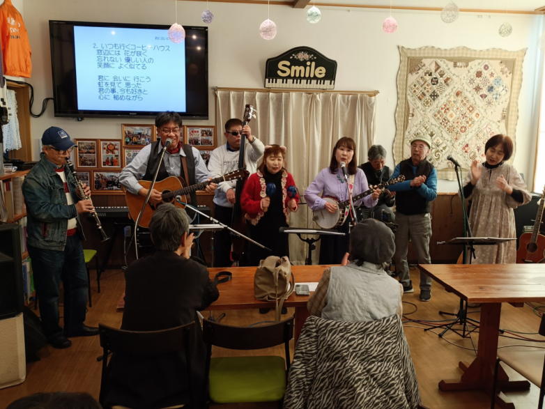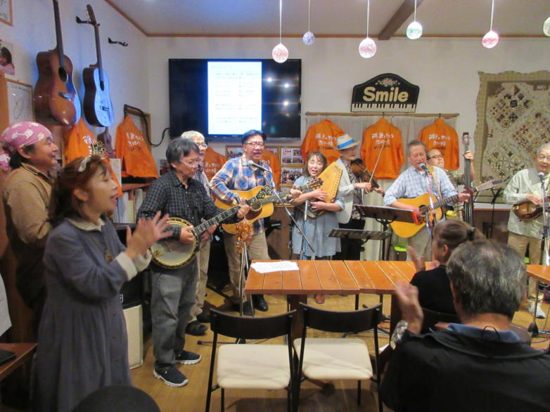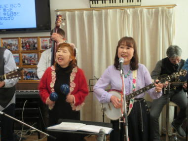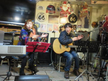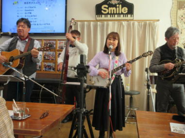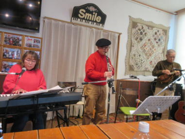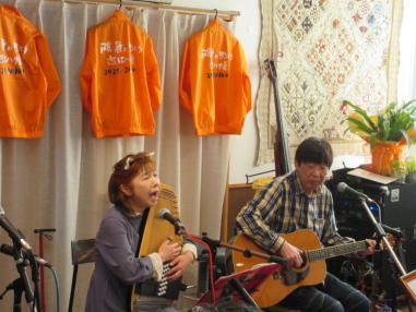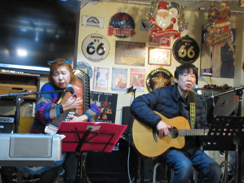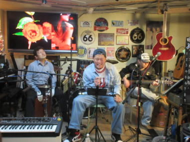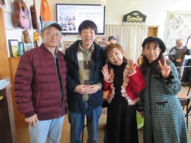 | 滋賀県近江八幡市にあるコミュニティカフェ・スマイルに て、「第159回にちようライブ」に出演させて戴きました。 毎年、新年1回目の「にちようライブ」には最初に出演させ ていただき、バンジョーの「春の海」に合わせて八坂神社の 鈴を振るという新春幕開きの儀式をやっているのですが、今 回はYumiが喪中のため、遠慮させていただきました。 出演者は顔なじみの方ばかりで、なごやかな雰囲気の中、素 敵なライブになりました。 本年も健康に気をつけて、人との繋がりを大切にしながら、 楽しく歌っていきたいと思います。 ![]() 【おとぎ猫の演奏曲】 @柳の木の下に A上海バンスキング・メドレー (月光値千金〜上海リル〜サイドバイサイド) B石狩挽歌 C明日になればね D風に吹かれ続けている(中川五郎さん訳詞) ![]() ![]() |