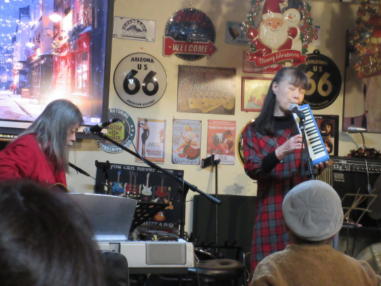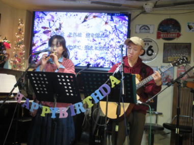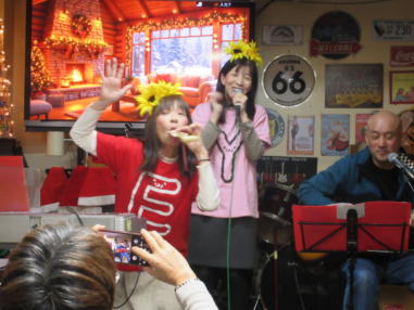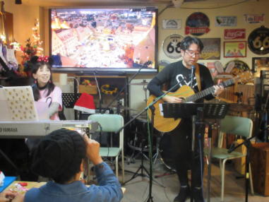 滋賀県野洲市にあるライブカフェ「森のくまさん」にて おとぎ猫がホストバンドでクリスマスコンサートを開きまし た。 前日がYumiの誕生日で、マスターや出演者の皆様にお祝いし ていただきました。 会場はとても盛り上がり、出演者やお客様と一緒に、ホーム パーティーのような楽しい時間を過ごすことができました。 森のくまさんで出会った素晴らしい仲間に感謝致します。 ![]() 【おとぎ猫の演奏曲】 @ サンタが街にやって来る A 陽気に行こう B 危険なふたり C 落陽 D 青春の影 E オリビアを聴きながら ![]() しんちゃんにパーカッションのサポートをいただき、3人で 演奏しました。 ![]() お誕生日のケーキです。 ![]() 素敵なプレゼントもいただきました。 ![]() ![]() |