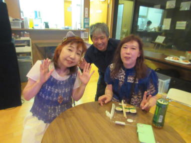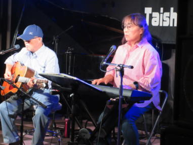 | 枚方公園の近くにあるKsさんにて… 「プレミアムユニット祭り」に出演させて戴きました。 店長の岡村さんはYumiと同じ高校だったことがきっかけとな り、このお店へは2度目の出演です。 出演者の皆様はすべて初めてお会いする方ばかりで、バラエ ティー豊かなそれぞれのジャンルを、とても新鮮な気持ちで 拝見しておりました。皆さんの演奏される音楽はクオリティ ーが高く、とても充実したライブとなりました。 京都七条から京阪特急に乗って枚方まで行ったのですが、普 段電車に乗らないTokuは、演奏旅行のような気分で楽しかっ たです。 終演後も出演者の皆様と交友を深め、楽しい時間を過ごさせ て戴きました。 新たな出会いがあり、新鮮な感触。たまには遠征も良いもの ですね。 ![]() 【おとぎ猫演奏曲】 @あした天気になあれ Aカーターファミリーメドレー B石狩挽歌 C綿つみの歌 Dサルビアの花 Eイマジン (おとぎ猫訳詞) ![]() ![]() 同ビルの1階に唐揚げ屋さんがあって、店内からお弁当をオ ーダー出来ます。とても美味しかった。 ![]() 店長の岡村さんとツーショット。 岡村さんはブルーグラス・カントリー・フォーク系のフラッ トマンドリン奏者で、ギターも歌もお上手です。 |