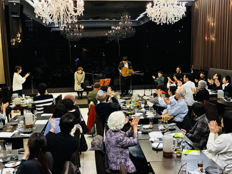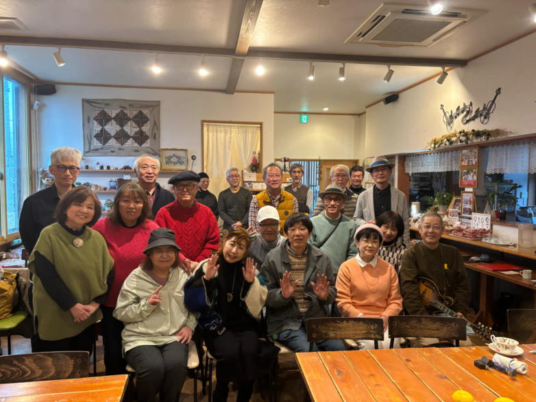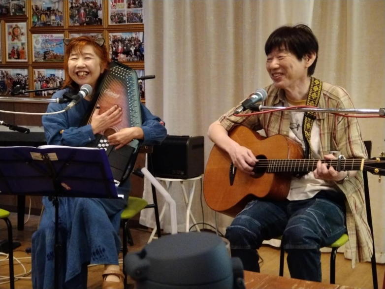 | 滋賀県近江八幡市にあるコミュニティカフェ・スマイルにて 原ファミリーバンドさん企画ライブ「フォークな仲間たち」が 開催されました。 京都から滋賀に仲間が増えて20年間続いているのは、原さん ご夫婦のお人柄と、魅力ある演奏と、そしてプロテストソン グであると私は思っています。 滋賀で初めてライブに出させて頂いた10年前、私は原ファミ リーバンドさんと出会いました。 今までフォークソングと馴染みがなかった私は、衝撃的な感 覚だったことを憶えています。 それは平和へのメッセージソングでした。 時代背景や生活は違っていても、人が愛する家族や、恋人を 戦争のために犠牲になる悲しみや葛藤を歌ったものでした。 フォークソングとは本来はこういうものなのかもしれないと 感じました。 原さんはプロの方々とも交流がありますが、本当のフォーク とは上下関係のないものであると教えてくださいました。 そういう世界がもし本当なら… 私はフォークが大好きになりそうです。 世界がそうなれば戦争もなくなり、ロシアとウクライナが料 理を囲んで、同じ音楽を奏でることでしょう。 未来が平和で愛に満ちた世界でありますように… (文責:Yumi) ![]() 【おとぎ猫の演奏曲】 @ 生活の柄 A 少年時代 B 腰まで泥まみれ C 愛とあなたのために D 青春の影 ![]() ![]() ![]() |
