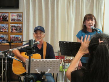 | 9月16日、敬老の日。ライブ・カフェ森のくまさんで「秋の 日コンサート」が開催されました。 おとぎ猫は朝からウッディルームで練習をした後、ランチを 食べました。午後からは出演者の皆さんやお客様と再会を楽 しみながら、演奏をし歌いました。 年齢的にも色々な疾患が出たり、親の介護や、将来に対する 不安など…様々なことがありますが、音楽を通じて出会った ご縁のある方々とこれからも楽しく歌って行きたいと思いま す。 ![]() 【おとぎ猫の演奏曲】 @少年時代 A生活の柄 Bイムジン河 Cふるさとの風 Dリターン・トゥ・パラダイス ![]() ![]() ![]() ![]() |