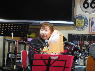 ![]() 交流会での吉崎さんのご挨拶。 ![]() ![]() セッションが始まりました。 ![]() ![]() Yumiはボーカルでセッションに参加。 ![]() |