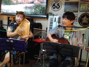 京阪電車に乗って、枚方公園前のKsさんに出演させて頂きま した。 今回は洋楽やカントリーのベテランの方々に加えていただ き、トラッド(アメリカの古い曲)を中心に日本語訳で歌わせ て頂きました。 Yumiと店長の岡村さんとは偶然にも、同じ日吉ケ丘高校だっ たことから、ご縁ができお声を掛けて頂いております。 長年にわたり音楽をされている皆様の中で、楽しく勉強にな った1日でした。 岡村さん(フラットマンドリン)とのコラボも楽しかった。 ![]() 【おとぎ猫の演奏曲】 @ 陽気にいこう A ふるさとの風 B 腰まで泥まみれ C 風に吹かれて D 陽のあたる道 ![]() ![]() ![]() ![]() ![]() ![]() 同じビルの1階にある唐揚げのお店から出前をしてください ます。とっても美味しい。 ![]() |