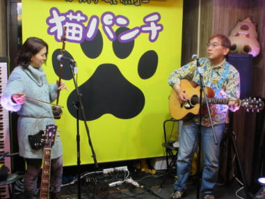 大阪市淀川区西中島にある猫パンチさんで猫好きの人が集ま るライブに初めて出演させて頂きました。 猫パンチさんは今年の7月にオープンされたばかりのお店で す。「みどりのカピバラ」のお二人がご結婚されてお店を開 かれ、ユニット名も「猫パンチ」と改名されました。 猫好きの私はお店に入るなり猫ちゃんグッズがいっぱいで、 猫ちゃん動画が流れていて、興奮状態になりました。 バラエティー豊かな出演者の皆さんと楽しい時間を共有で き、交流を深め、Facebookでお友達になりました。 これからも音楽で出会ったご縁を大事にして行きたいと思い ます。(以上、Yumi) 行動範囲が狭い「おとぎ猫」としては、枚方に続き新大阪 と、珍しく遠出が続きました。たまには遠足気分で、こうい うのも楽しいものです。 猫パンチさんはとても素敵なお店でした。キーマカレーも美 味しかったし、ソファの座り心地がよくて、長時間居ても疲 れなかったです。 共演者も皆さん素敵な方ばかりで、楽しいライブになりまし た。 また機会があればお邪魔したいです。(以上、Toku) ![]() 【おとぎ猫の演奏曲】 @ 陽気に行こう A 青春の影 B ふしあわせという名の猫 C 石狩挽歌 D イマジン(おとぎ猫訳詞) ![]() ![]() ![]() このお店の経営者、カピバラさんとみどりんさん ![]() キーマカレー、美味しかったです。 |